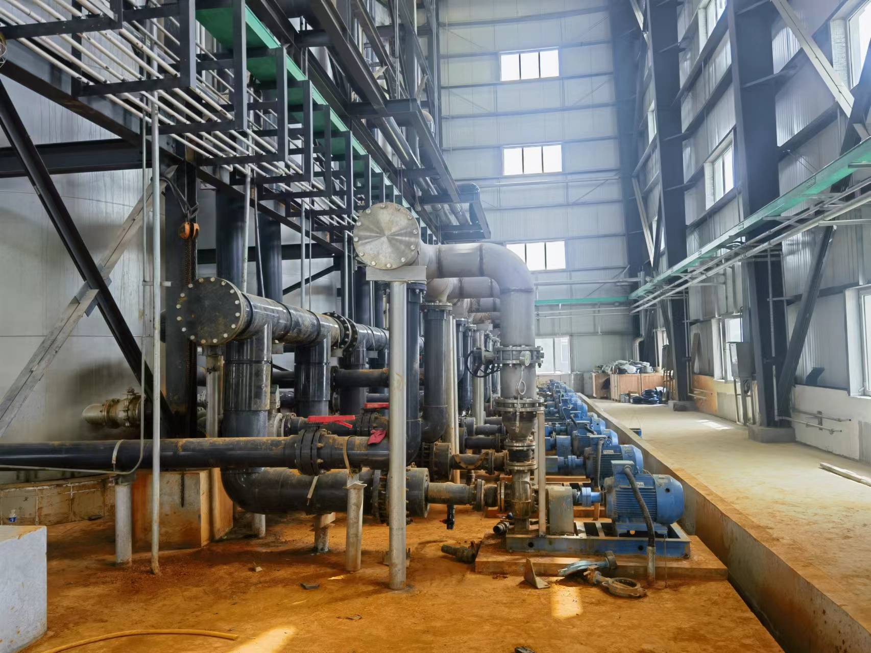 一期流化床芬頓反應(yīng)器,密密麻麻的的泵和管道,地面較臟