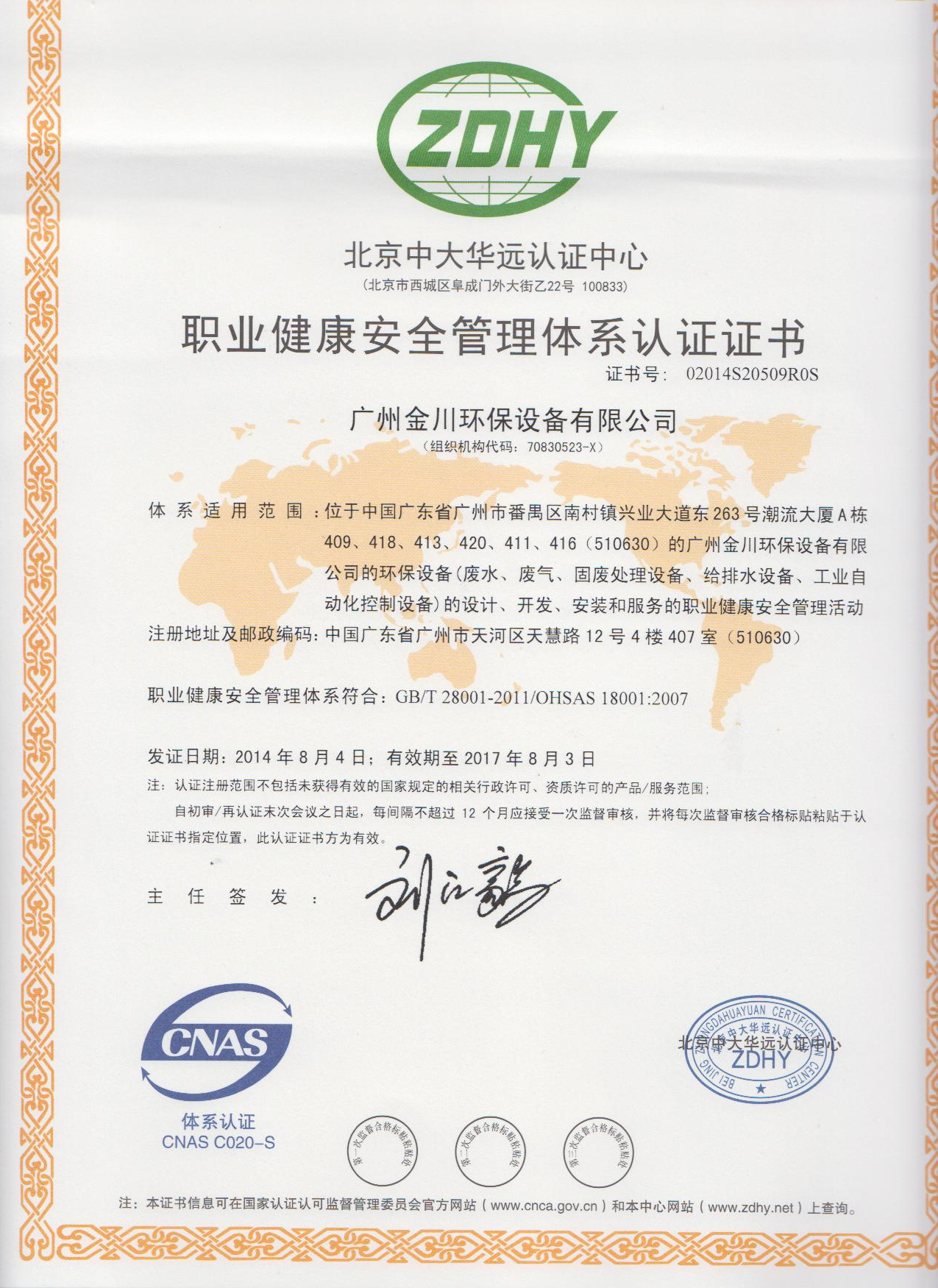 從2013年開始,公司開始著手認證的準備,經(jīng)過多次修訂和完善,最終在全體員工的共同努力下,經(jīng)過北京中大華遠認證中心的認證審核,于2014年8月4日正式通過國家標準審核,并取得了職業(yè)健康安全管理體系兩項證書。